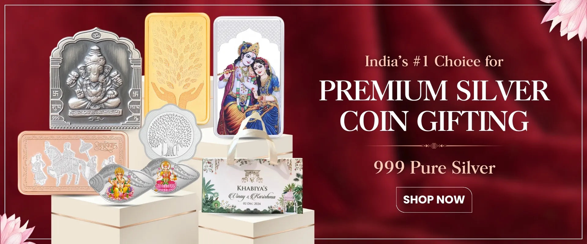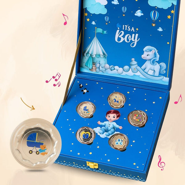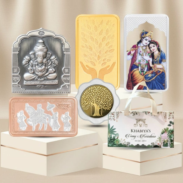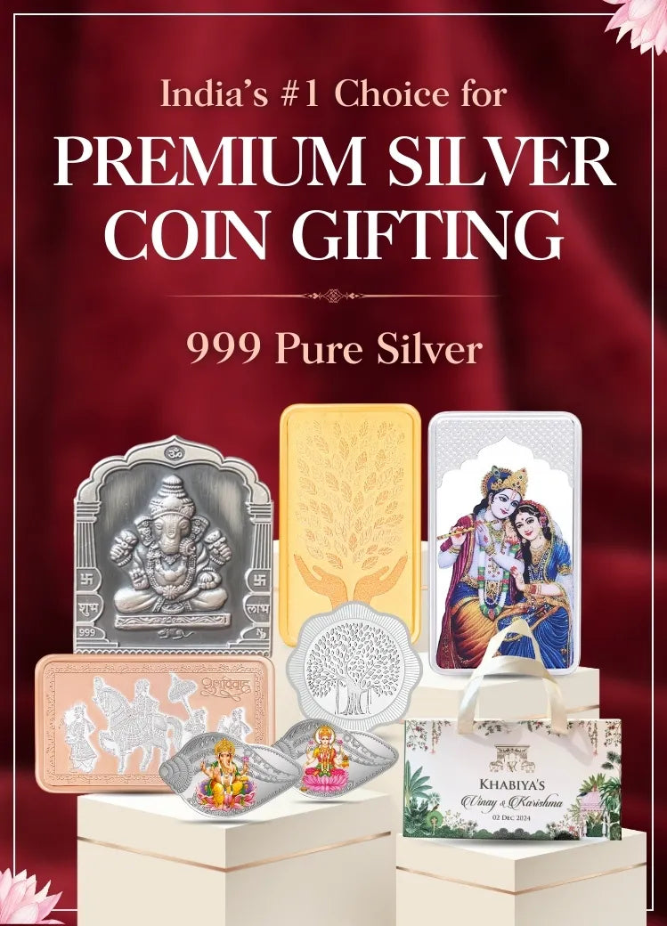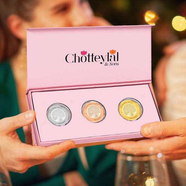 Celebration 50 Coin Box, Banyan Tree Design, Lotus Shape, Set of 25 Coins (2 Gram Each), 999 Purity - Ready To Ship