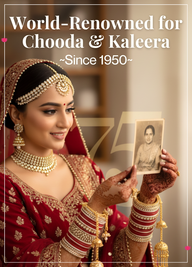 Founded by Shree Chotteylal Khandelwal from Nandrampur Bass, Haryana, we're the makers of the iconic handmade Chotteylal Pure Pearl Chooda. As the most trusted Chooda shop in Karol Bagh since 1950, New Delhi, we have grown into a luxury brand with global recognition and over one million happy clients.