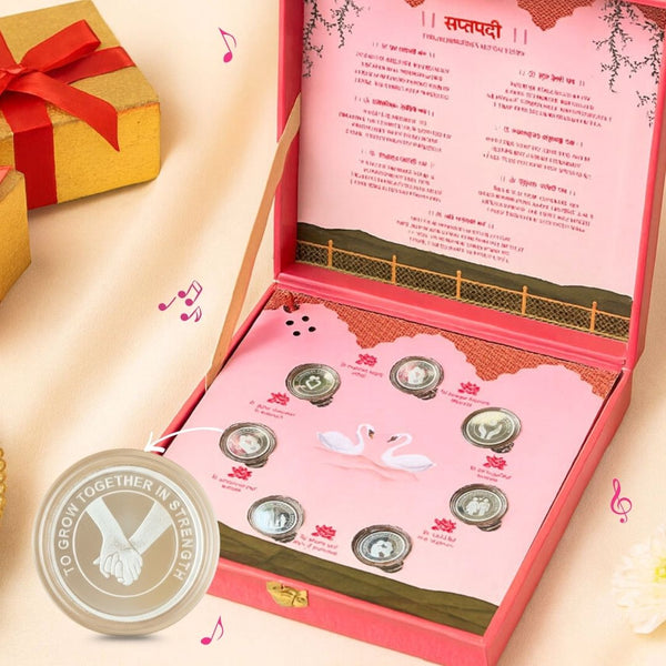 Aashirwaad Baraati Design, Rose Gold Finish, Dollar Shape, 20 gm, 999 Silver Coin Box Set – Ready to Ship