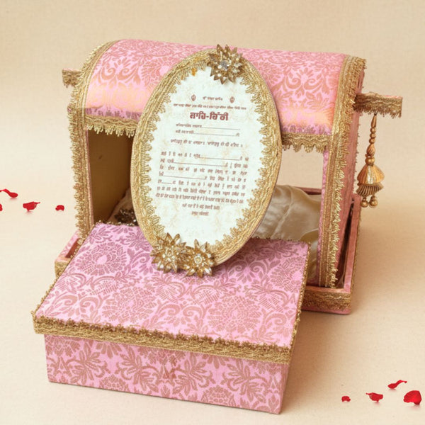 Pink Musical Sahe Chitthi / Lagan Patrika | Palki/Doli Style Traditional Invitation Set – Includes Mithai Box and Invitation Card