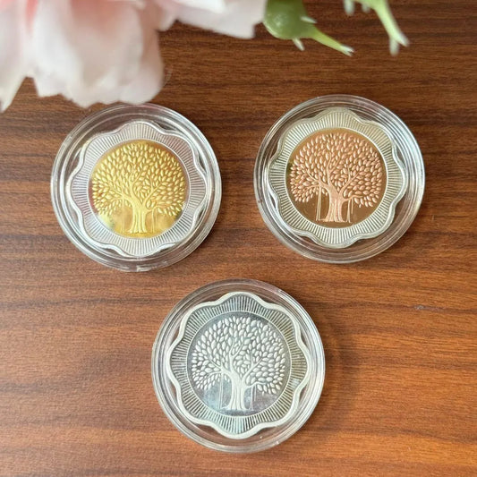 Banyan Tree, Tri-Color, Floral Shape, Set of 3 (5 Gram Each), 999 Purity Silver Coin - Ready To Ship