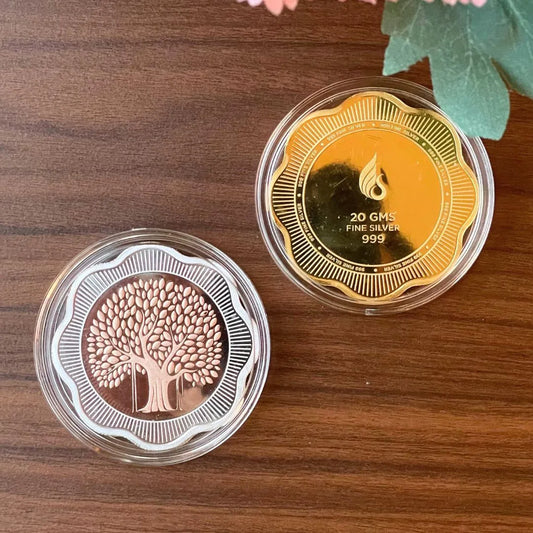 Banyan Tree, Floral Shape, Set of 2 Coins (20 Gram Each), 999 Purity Silver Coin - Ready To Ship