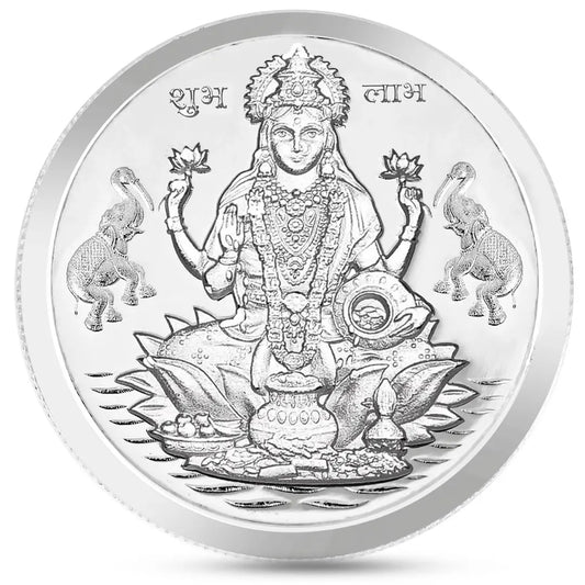 Lakshmi Ji, Silver, Round Shape, Single (Multiple Weights), 999 Purity Silver Coin - Ready To Ship
