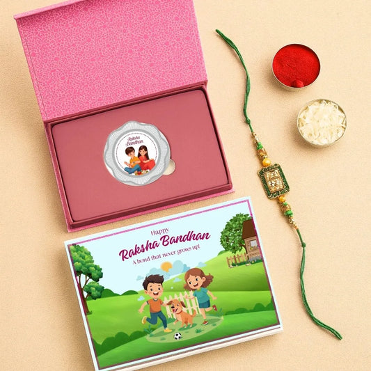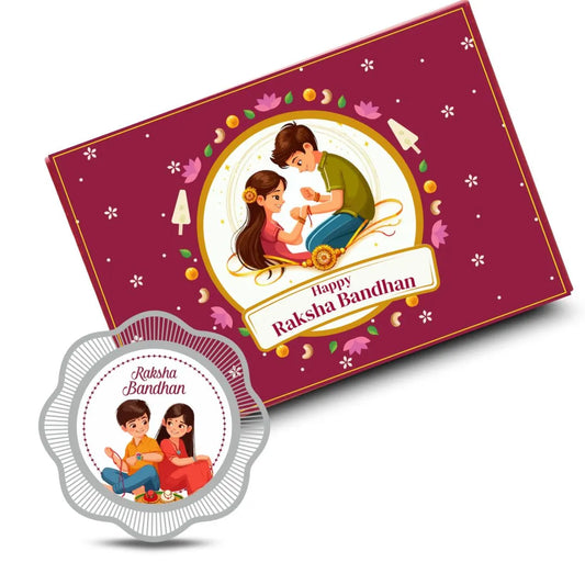 Happy Raksha Bandhan Box, 5gm Floral Silver Coin With Rakhi Card - 999 Purity Silver Coin