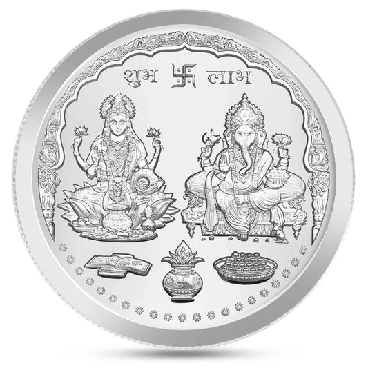Lakshmi Ganesh Ji, Silver, Round Shape, Single (Multiple Weights), 999 Purity Silver Coin - Ready To Ship
