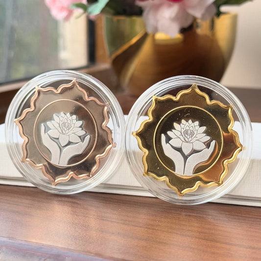 Lotus In Hand, Rose Gold & Gold Finish, Lotus Shape, Set of 2 Coins (25 Grams Each), 999 Purity, White Box - Ready To Ship