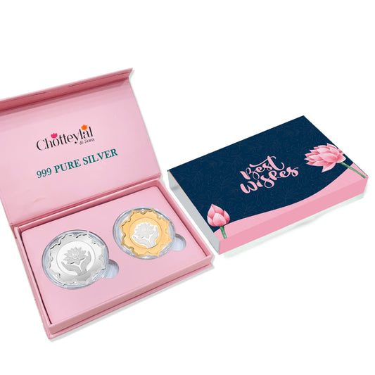 Best Wishes Lotus Box, Lotus Shape Coin & Design, Set of 2 Coins (5 Gram Each), 999 Purity Silver Coin - Ready To Ship