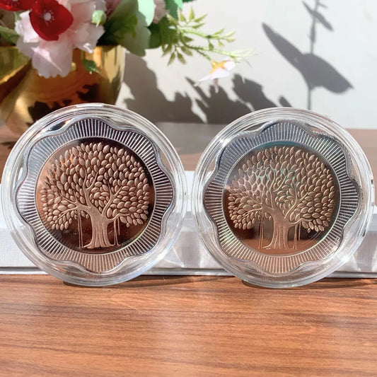 Banyan Tree, Gold & Silver, Floral Shape, Set of 2 (50 Gram Each), 999 Purity Silver Coin - Ready To Ship