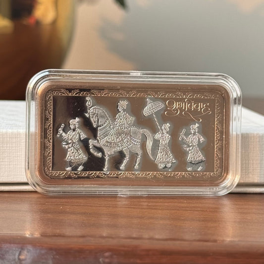 999 Pure Silver Raja & Rani Wedding Bar Coin Set – 20gm