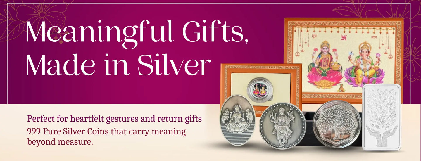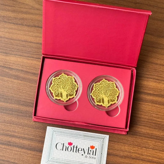 Shagun Number - 11gmBanyan Tree Lotus Gold Finish 999 Silver Coin Set (11 gm) – Chotteylal & Sons