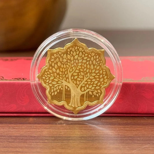 Banyan Tree, Silver (gold finish), Lotus Shape, 5 gm, 999 Purity Silver Coin - Ready To Ship