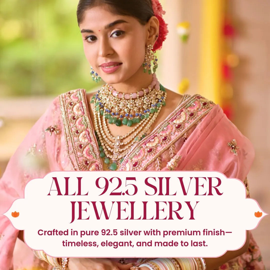 Grand Bridal Polki Necklace Set - 22K Gold Plated, 92.5 Silver