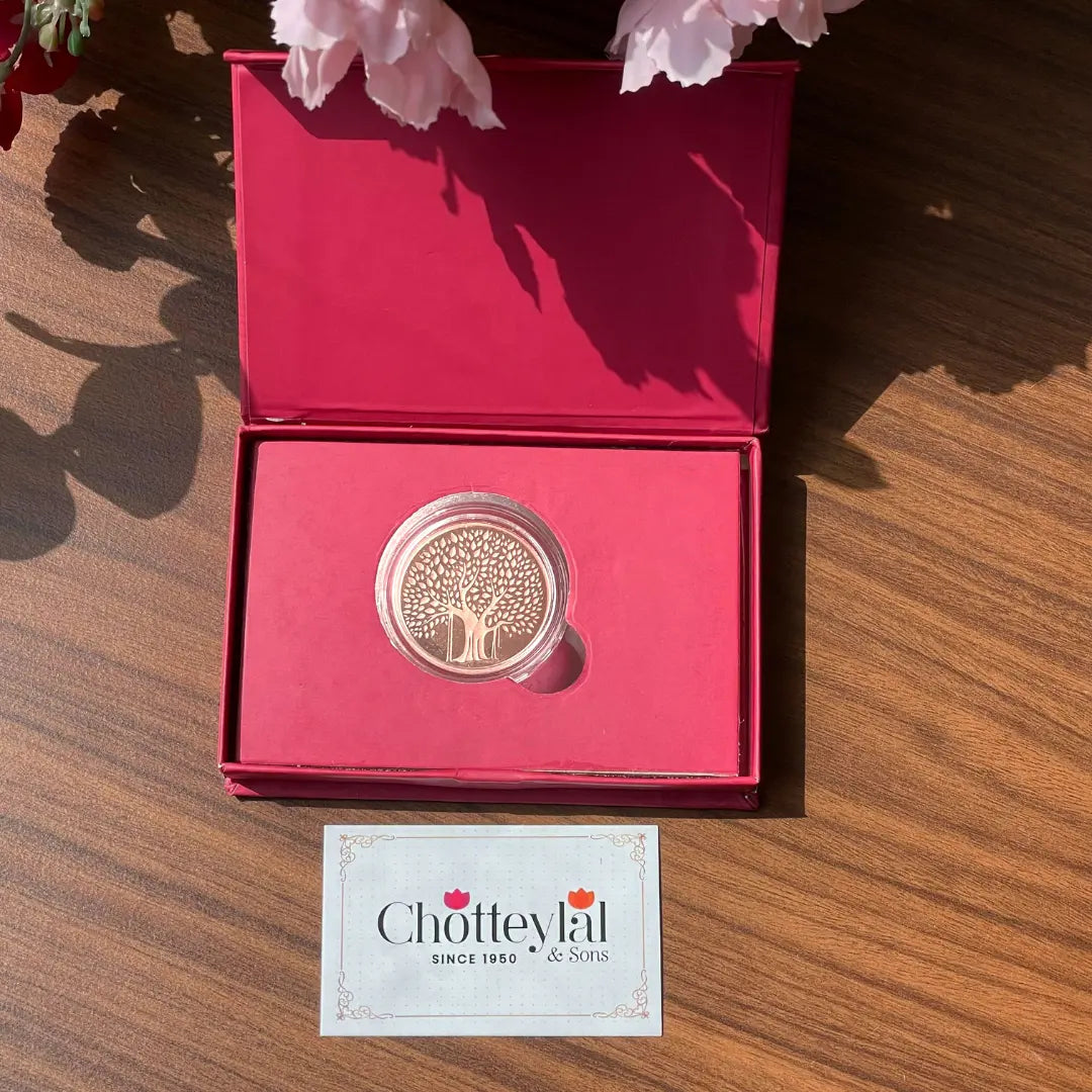 Banyan Tree, Rose Gold, Floral Shape, Set of 2 Coins (50 Gram Each), 999 Purity Silver Coin - Ready To Ship