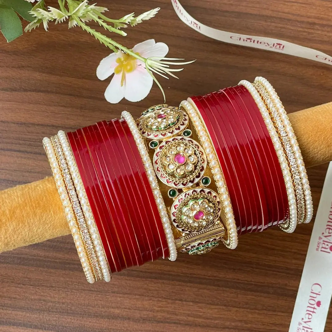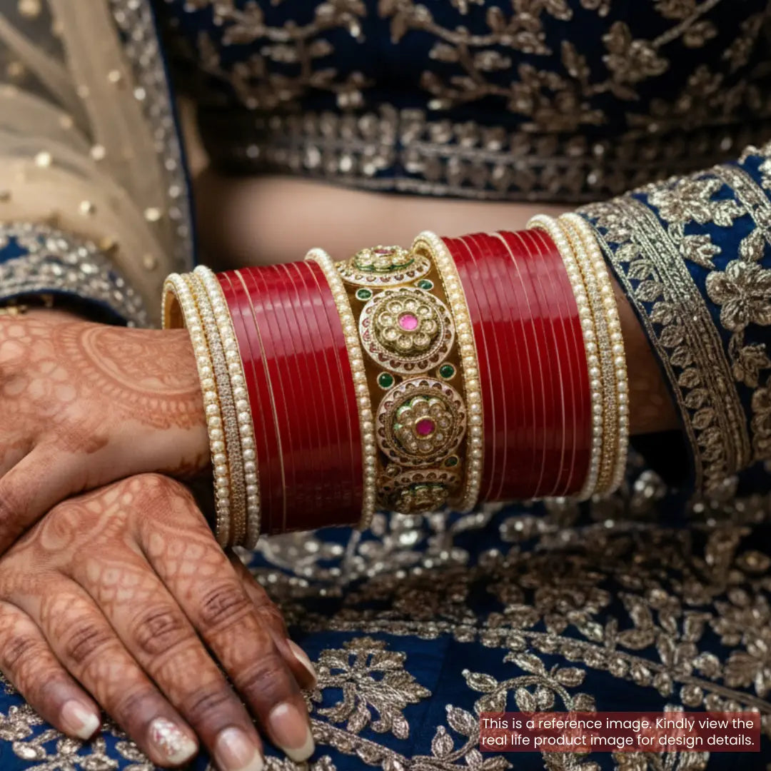 Please note - Our chooda sets are designed with a combination of detachable and non-detachable kada/bangles. Please refer to the product images for exact details on which pieces are detachable.