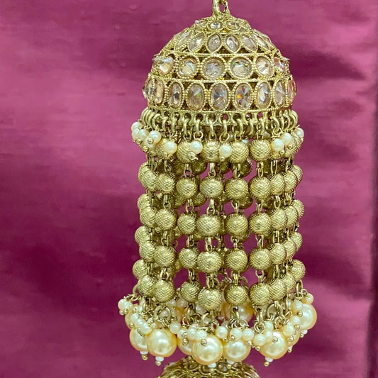 Dull Gold Oxidised Tassel Ends Bridal Kaleera