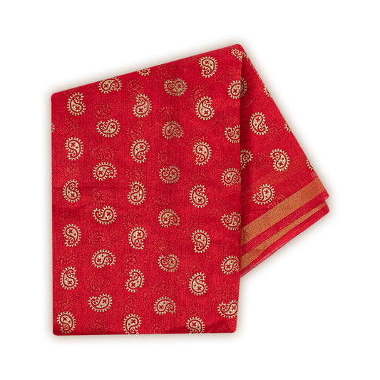 Set of 5/10 Chanderi Cottonn Red with Golden block print Stoll