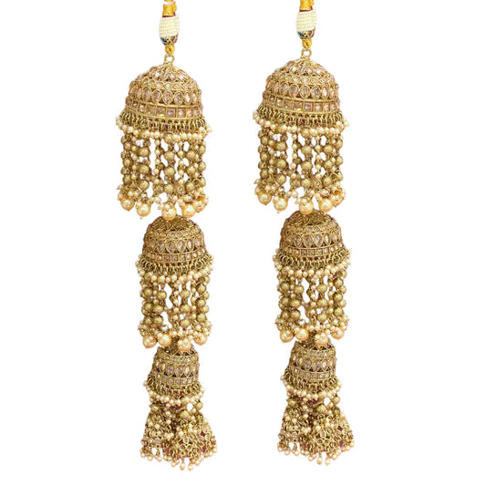 Golden Oxidised Stone & Pearl Bridal Kaleera