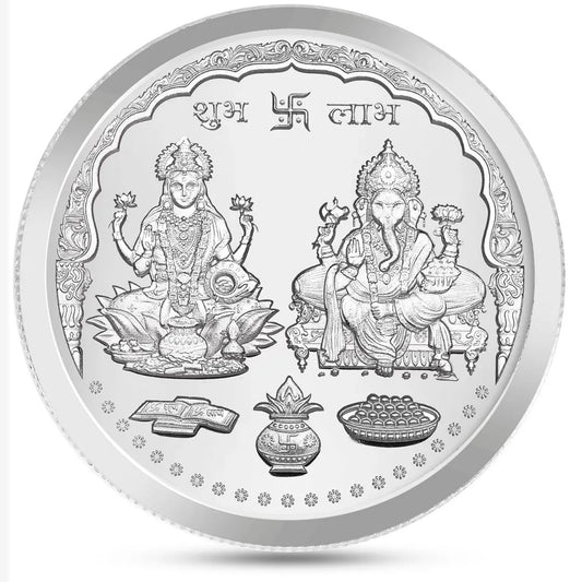 Lakshmi Ganesh Ji, UV Printed, Round Shape, Single, (50 Gram), 999 Purity - Ready To Ship