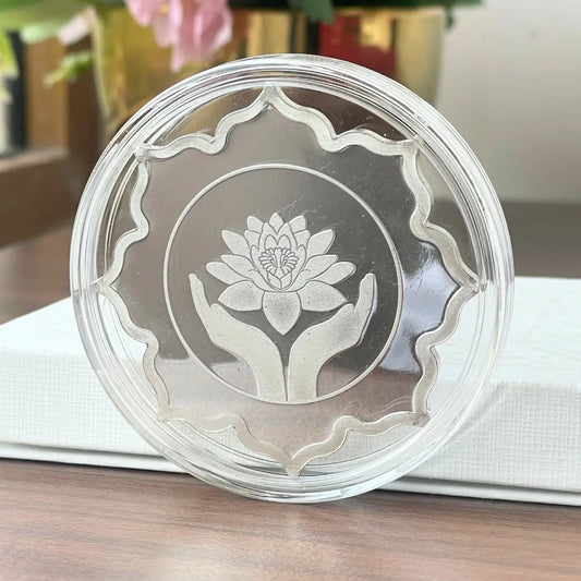Lotus In Hand, Floral Shape, Single (50 Gram), 999 Purity Silver Coin - Ready To Ship