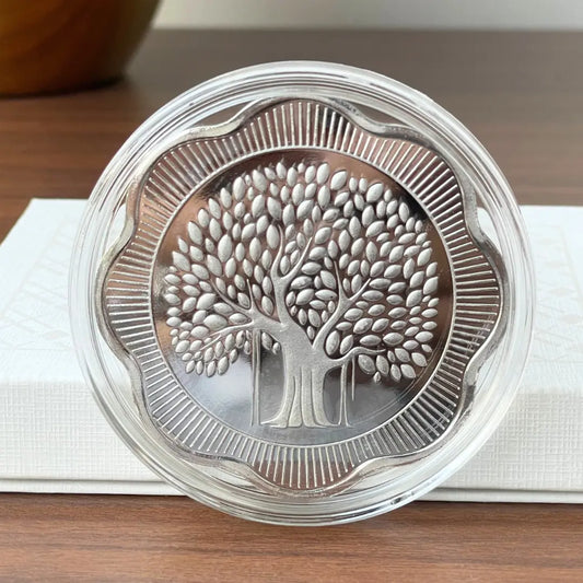 Banyan Tree, Floral Shape, Single (50 Gram), 999 Purity Silver Coin - Ready To Ship