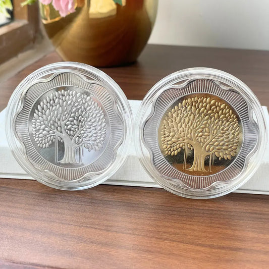 Banyan Tree, Gold & Silver, Floral Shape, Set of 2 (50 Gram Each), 999 Purity Silver Coin - Ready To Ship