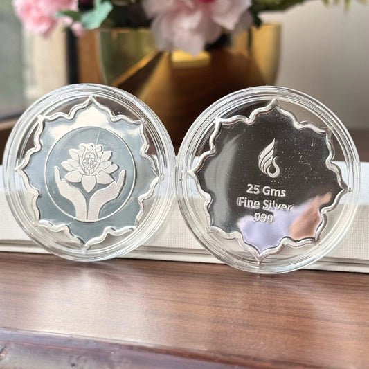 Lotus In Hand, Lotus Shape, Single (25 Gram), 999 Purity Silver Coin - Ready To Ship