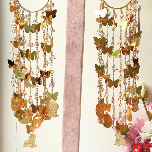 Golden Bollywood Inspired Butterfly & Pearl String Bridal Kaleera - Customizable With Unique Charms