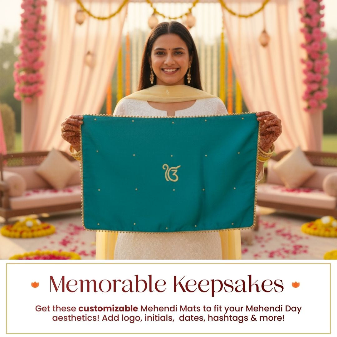 The Chotteylal and Sons Classic Om Motif Mehendi Mat – Dark Pink is bold, vibrant, and auspicious, making it the perfect addition to your Mehendi ceremony. Made with premium satin, it offers a soft, luxurious seating surface while the Om motif brings spiritual significance to your décor. The deep pink shade adds energy and charm, making it a must-have essential for your celebration.
