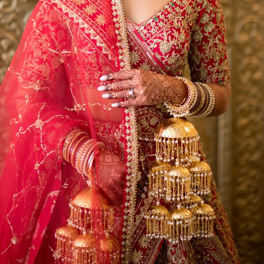 Royal Majesty - Red Hand Finished Designer Chooda for Bride & Golden Traditional Ceremonial Jhadne wala Kaleera