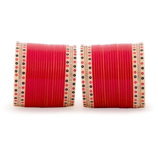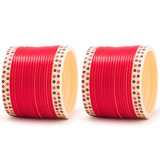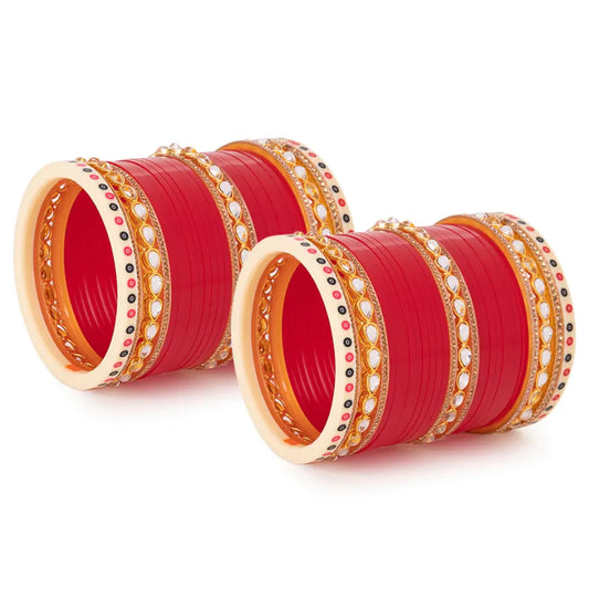 Elegantly Red - Red Chooda with Kundan & Dotted Bangle