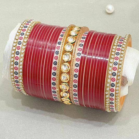 Enchanted Crimson Chuda | Chura | Chooda : Red Dot Chuda | Chura | Chooda with Pearl and Kundan Bangles