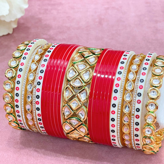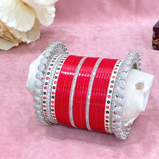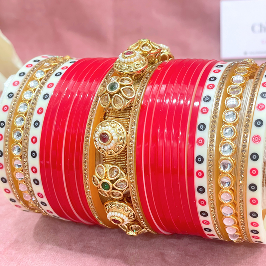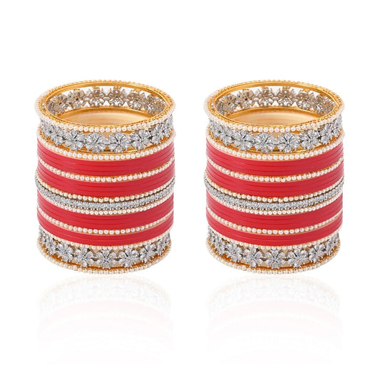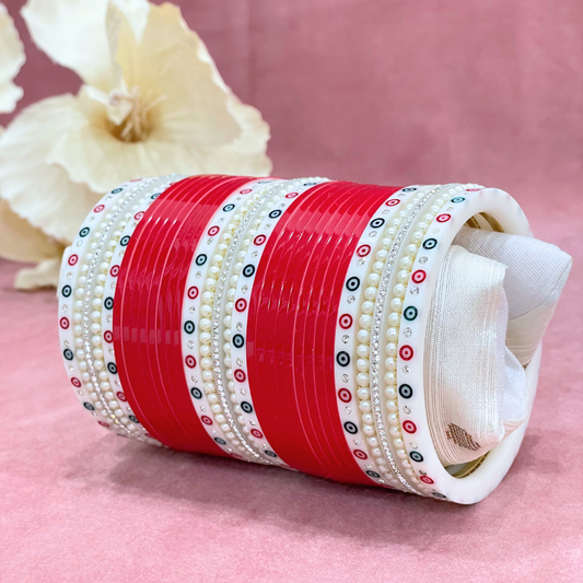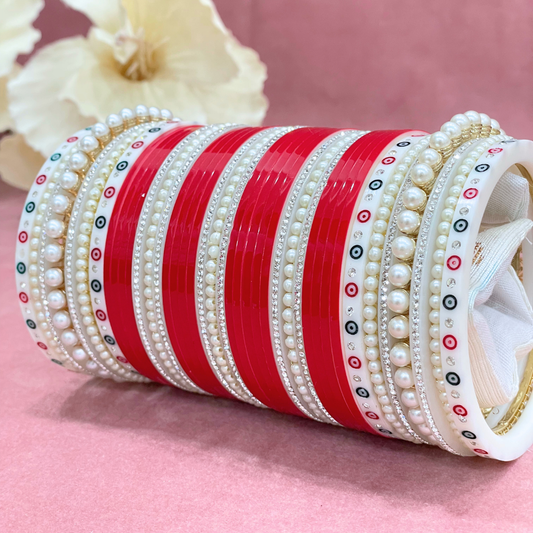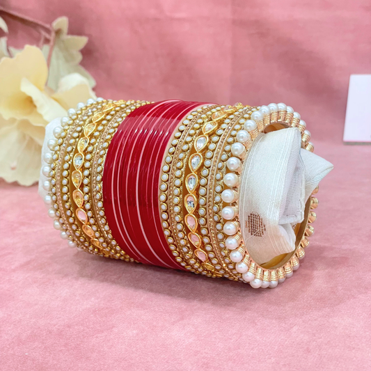 Semi Pearl Red Designer Chuda | Chura | Chooda
