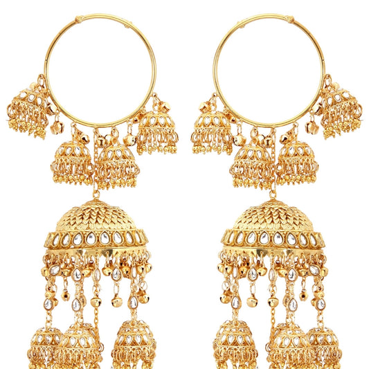 Golden Sleek Dome With Jhumkis Bridal Kaleera - Customizable With Unique Charms