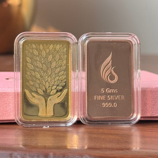 Leaf In Hand, Gold & Rose Gold Finish, Bar Shape, Set of 2 (5 Gram Each), 999 Purity Silver Coin - Ready To Ship