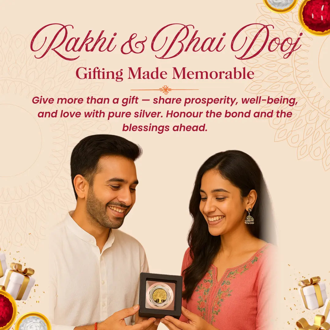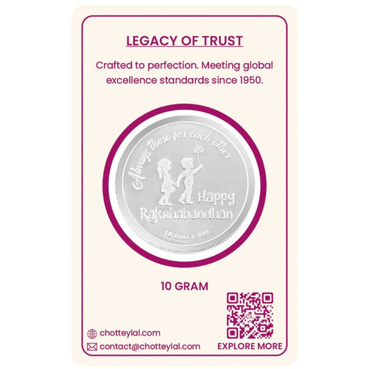 Raksha Bandhan Bhai-Behen, Silver Coin 10 Gram Blister Card, 999 Purity Silver Coin - Ready To Ship