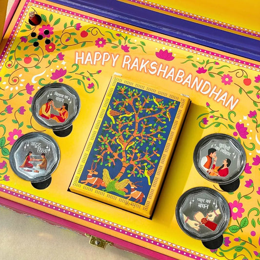 Raksha Bandhan/Bhai Dooj Musical Box With Special Playing Cards - 999 Purity Silver Coins