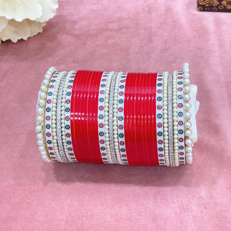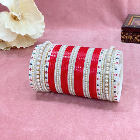 Semi Pearl Red Designer Chuda | Chura | Chooda