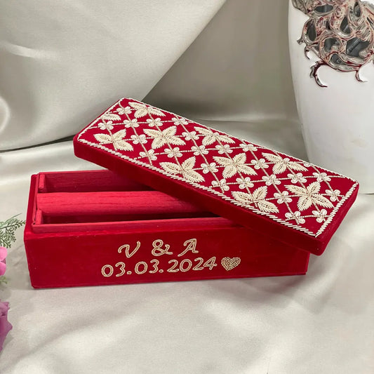 Dark Red Chooda Box With Flower Design - Customize Logo & Text