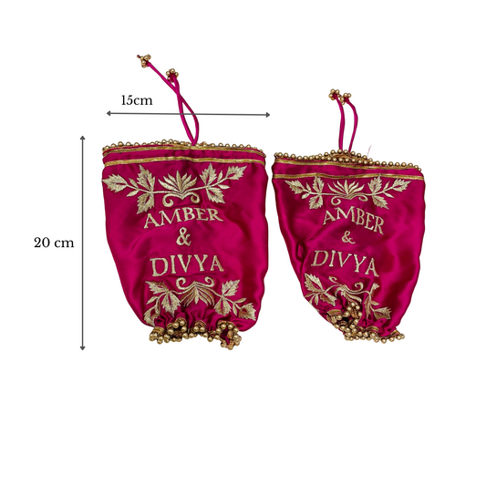 Customisable Magenta Satin Chooda Cover With Floral Pattern & Golden Pearl Beads