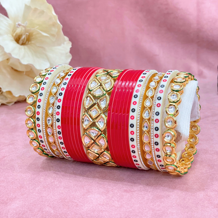 Semi Pearl Red Designer Chuda | Chura | Chooda