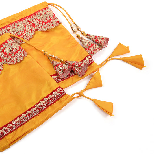 Yellow Taffeta Chooda Cover With Red Gotta Patti Lace
