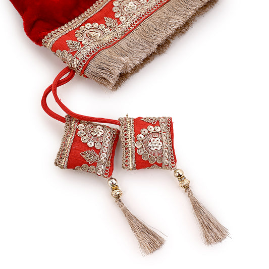 Red Velvet Chooda Cover With Lace, Tassels & Fur Work