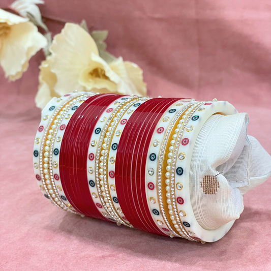 Semi Pearl Dark Red Designer Chuda | Chura | Chooda