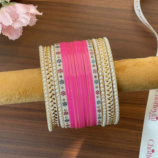 Pure Pearl Classic Heritage Diamond Dark Red Chooda Set of 21