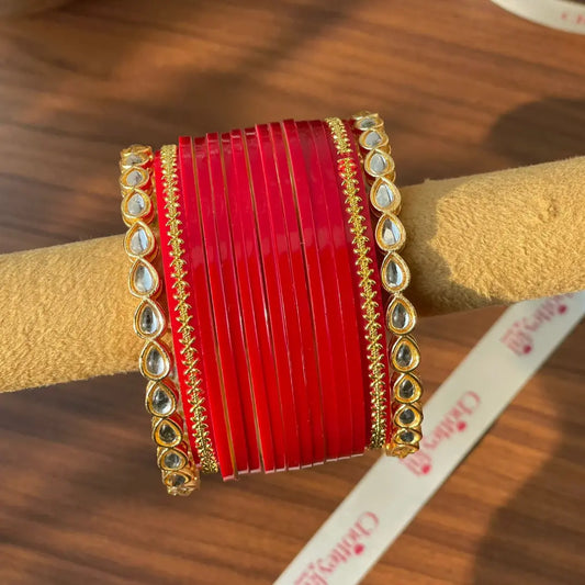 Pure Pearl Classic Heritage Diamond Dark Red Chooda Set of 31