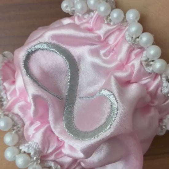 The Traditional Gaana with Baby Pink Cover is a meaningful wedding ritual accessory with deep cultural significance in Indian weddings. Gaana, also known as Kangna Dora, is tied for both the bride and the groom during pre-wedding ceremonies as a symbol of protection, good fortune, and the beginning of marital life. The baby pink cover is specially designed for the bride, adding softness, grace, and ceremonial elegance to her bridal attire.