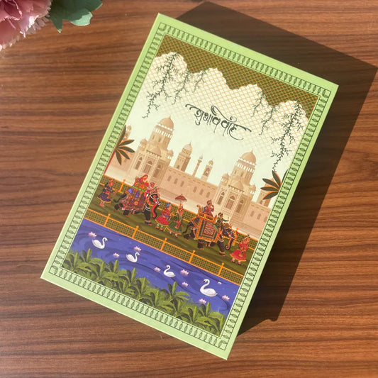 Shubh Vivah Green Wedding Coin Box, UV Printed, Square Shape, Set of 5 Coins (5 Gram Each), 999 Purity Silver Coin – Ready to Ship