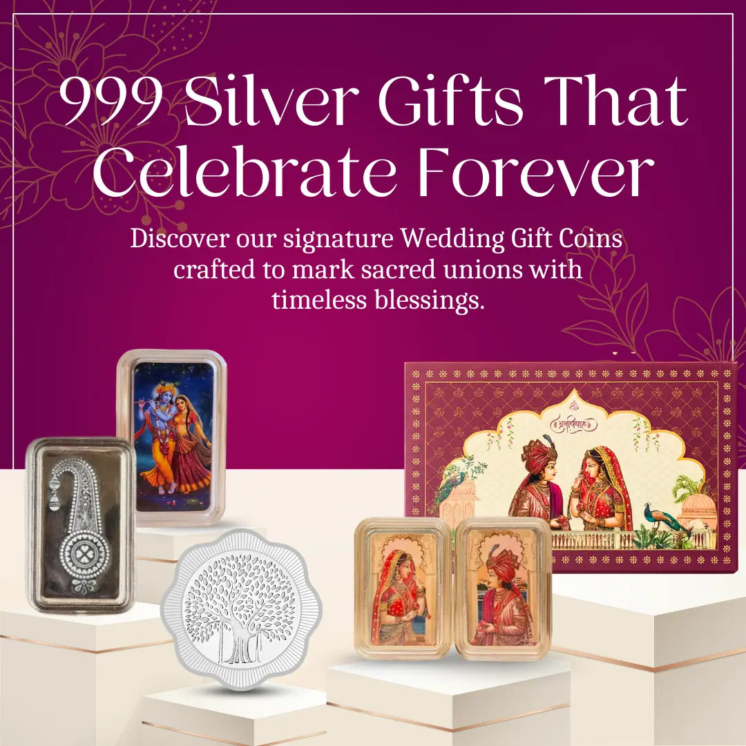 999 Pure Silver Raja & Rani Wedding Bar Coin Set – 20gm