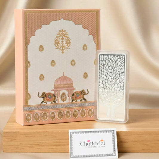 Banyan Tree, Gold & Silver, Floral Shape, Set of 2 (50 Gram Each), 999 Purity Silver Coin - Ready To Ship