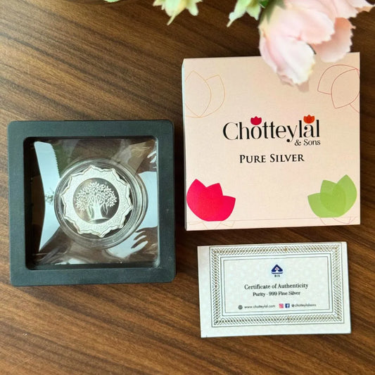 Banyan Tree, Silver, Lotus Shape, 10 gm, 999 Purity Silver Coin - Ready To Ship